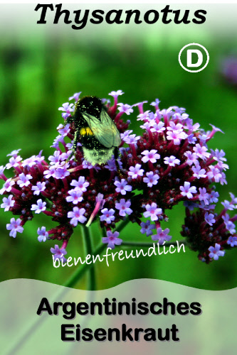 Ein duftendes, filigranes, graziles bedingt winterhartes Eisenkraut mit lavendelfarbenen Blüten, sehr langen, vierkantigen, schlanken Blütenstielen, die sich sehr gut für Blumensträuße eignen. Vermehrung auch durch Selbstaussaat. Typische Bienen- und Schmetterlingspflanze. Winterhart bis -10 ° C.