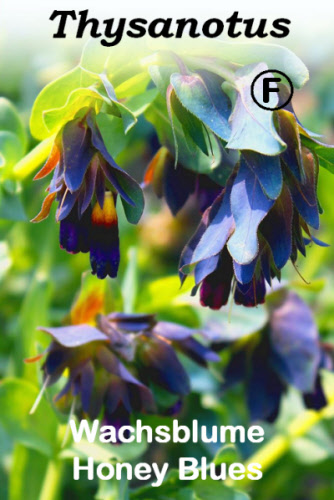 Eine einzigartige dreifarbige Blüte mit fast unwirklichen kräftig dunkelblauen kleinen Trompeten und ebenfalls blauem Laub, das wachsartig wirkt und ihr den Namen Wachsblume beschert. Winterhart bis -5°C !