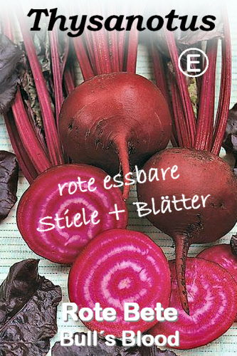 Blutrote Früchte mit rosa Ringen und dunkelrote ebenfalls essbare Blätter. Kräftiger Geschmack, außerordentlich gesund und sehr ertragreich. Außerdem eine besonders dekorative Farbkombination für Salate. Eine alte Rarität aus Italien.