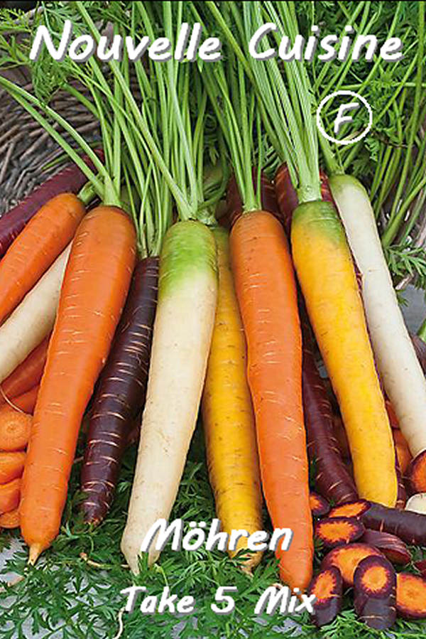 Eine exquisite Mischung der Sorten: Purple Haze, Mello Yello, White Satin, Narbonne Rouge, Rainbow. Lange, rote, halbstumpfe, starke Möhren mit sehr guter Lagerfähigkeit. Reich an Vitaminen.