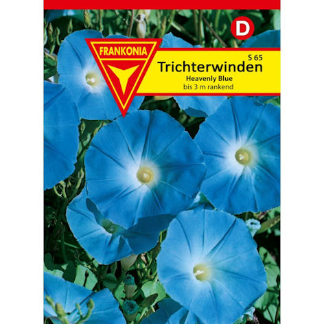 Besonders schnell wachsende und bis zu 3 m rankende Kletterpflanze mit dichtem Blätterwald und herrlich himmelblauen Trichterblüten. Eignet sich besonders zur Begrünung von Pergolen und Zäunen und ist beliebter Sichtschutz auf Terrassen und Balkonen.