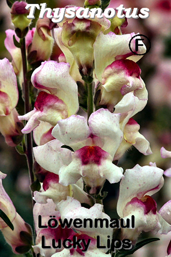 Ein neues halbhohes Löwenmaul mit zauberhaften, gleichmäßigen, zweifarbigen Blüten in Schneeweiß mit kräftig roten Lippen und einem zarten Duft bringen eine beschwingte Note in den Garten. Grünes Laub, gute Schnittblume.