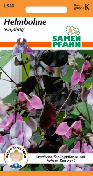 Diese exotische Kletterbohne besitzt nicht nur violette Blüten, auch die Hülsenfrüchte sind in einem dunkel-violetten Farbton äußerst attraktiv anzuschauen. In Europa wird die Helmbohne hauptsächlich zur Zierde angebaut, in Afrika und Indien ebenfalls als Nahrungsmittel und Heilpflanze. Sie ist trocken resistent und kann bis zu 3 m hoch wachsen.