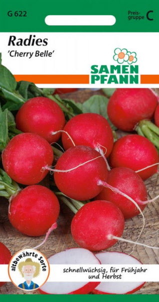 Sehr beliebte runde, scharlachrote, schnellwüchsige Sorte mit dünner Schale und mildem Geschmack. Ist für Kalttreiberei und Freiland geeignet. Reifezeit ca. 30 Tage.