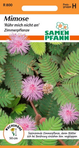 Die Mimose ist, wie der Name schon sagt, eine sehr sensible Pflanze, die bereits bei der leichtesten Berührung ihre Blätter abwendet bzw. zusammenzieht. Nach 20-30 Minuten richten sich diese wieder auf. Die zierlichen kleinen Blüten sind rosa gefärbt. Eine faszinierende Pflanze die Sie unbedingt einmal ausprobieren sollten.