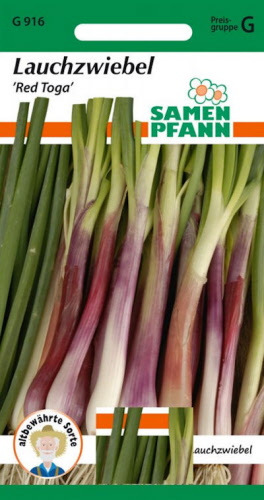 Winterharte, schnell wachsende Lauchzwiebel mit langem roten Schaft und geringer Zwiebelbildung. Milder Geschmack, für Salate und als frisches Gemüse. Sehr dekorativ.