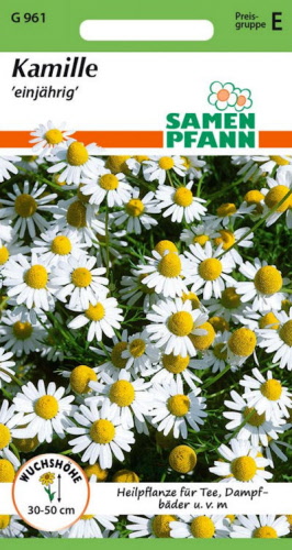Kamille ist eines der ältesten und meist gebrauchten Heilmittel und sollte in keinem Kräutergarten fehlen. Einjährig.