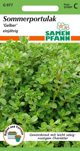 Der Sommerportulak ist ein beliebtes einjähriges Gewürzkraut mit frischem, leicht salzig-nussigem Geschmack. Verwendet werden die Blätter in beispielsweise Salaten und Soßen oder eingekocht, ähnlich Spinat. Er ist ertragreich und enthält viele Vitamine und Mineralstoffe.