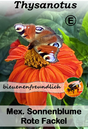Tithonia rotundifolia. Ein mittelhoher Klassiker mit großen, leuchtend tief orangeroten Blüten und langer Blütezeit. Ideal für den mittleren Beet Bereich in Kombination mit kompakten Rabattenpflanzen. Attraktiv für Bienen, Hummeln und Schmetterlinge.