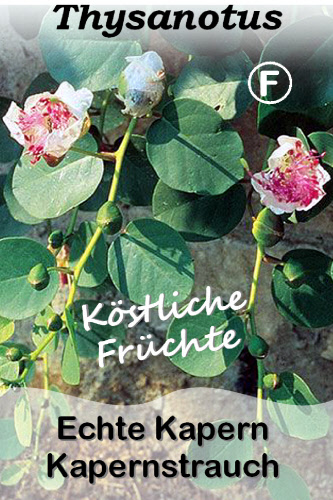 Echte Kapern mit großen dekorativen Blüten, duftenden und weißen Blütenblättern für heißes und trockenes Klima und durchlässige Böden geeignet. Sehr kleine Knospen oder unreife Früchte werden verzehrt, in Salzlake oder Essig konserviert. Aussaat im März in lockere Böden säen und in sehr sonniger Lage. Pflanzabstand 120 x 150 cm.