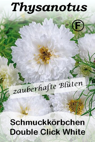 Eine zauberhafte, schöne süße schneeweiße Cosmea mit gefüllten Blüten. Auch als Schnittblume eine sehr schöne Erscheinung in der Vase. Einfache Kultur und sehr lange Blütezeit.