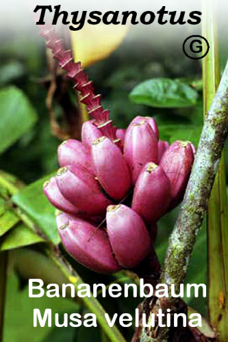 Ein besonderer Bananenbaum mit rosafarbenen Früchten. Ideal als Kübelpflanze mit starkem Wachstum und Nährstoffbedarf. Sehr rasch wachsend und imposant. Ausgezeichnet für die Terrasse, Wintergarten oder Dachgarten. Überwinterung im Haus.