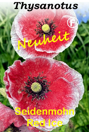 Ein besonders eindrucksvoller Mohn mit einer imposanten Farbkombination aus feuerrot und einem schneeweißen Saum an den Blütenrändern. Die Pollen sind interessant grün. Ein Blickfang in jedem Garten. In großen Töpfen auf der Terrasse oder im Beet eine magische Erscheinung.