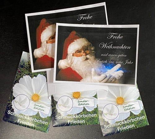 Die Weihnachtskarte mit Inhalt. Format 11 x 15 cm, mit Saatgut Tüte in der Karte.