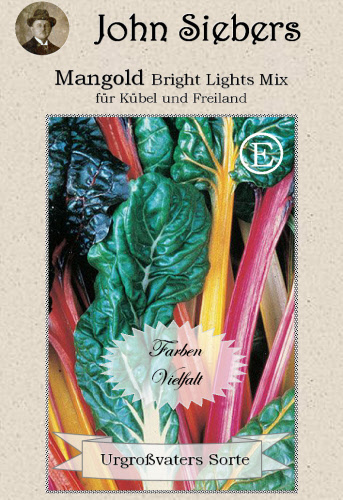 Beta flavescens. Leckere Mangoldstiele in einer breiten Farbpalette von Schneeweiß über Gelb, Orange, Pink, Rot bis Purpur violett und Blätter von Grün bis Dunkelrot. Ein kulinarischer Augenschmaus. Verwendung: Kohlrouladen, als Stielgemüse und Dekoration im Blumenbeet und in Kübeln. Ein ideales altes Wintergemüse.