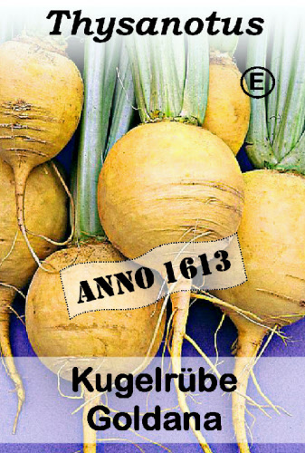 Brassica rapa. Die verbesserte halb frühe Goldene Kugel hat eine homogene, vollständig runde Wurzel mit 12-14 cm Ø, eine gelbe Schale und gelbes Fruchtfleisch mit ausgezeichnetem süßen Geschmack. Gute Kältebeständigkeit und lange Haltbarkeit. Die Ursorte ist seit dem Mittelalter bekannt. Sie kann roh, gerieben und natürlich auf viele Arten gekocht werden. Gute Winterlagerung möglich.
