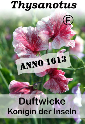 Lathyrus odoratus. Die Wiedereinführung eines alten Edelwicken-Klassikers mit einem sehr starken Duft. Schneeweiße Blüten mit purpurroten Sprenkeln und Maserungen in einer changierenden Melange und mit sehr guten Schnitteigenschaften. An sehr hohen Rankhilfen Prädestiniert.